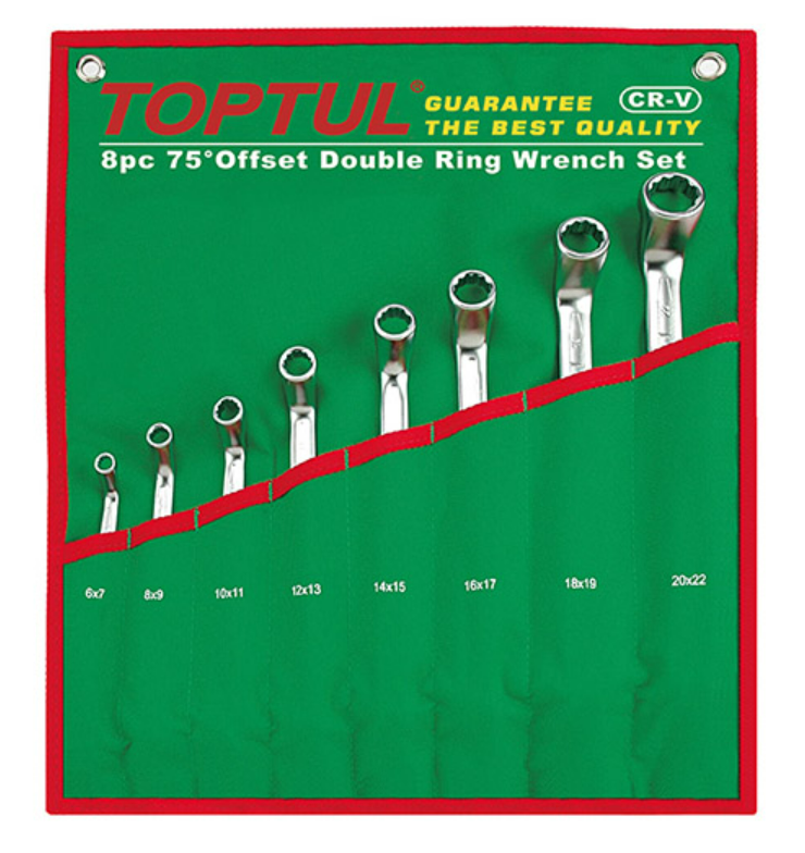 TOPTUL GAAA0810 75° Offset Double Ring Wrench Set (8 pcs, 6-22mm) | EMIN.ASIA
