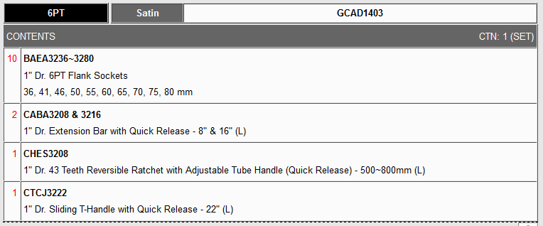 TOPTUL GCAD1403 14PCS Professional Grade 1inch DR. 6PT Flank Socket Set (METRIC) | EMIN.ASIA