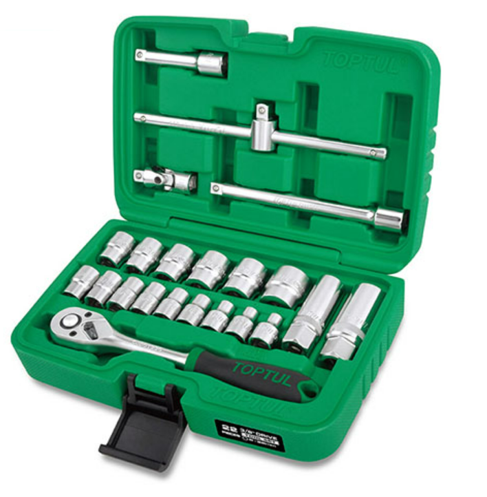 TOPTUL GCAI2202 Professional Grade 3/8" DR. Flank Socket Set (22 pcs; 6PT; Satin) | EMIN.ASIA