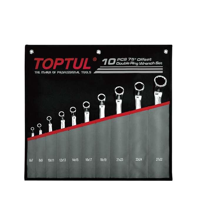 TOPTUL GPCI1001 75° Offset Double Ring Wrench Set (10 pcs) | EMIN.ASIA