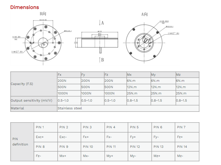 XJCSENSOR X-6A-D118-H31-B 6 Axis Force/Torque Sensor (200N~1000N) | EMIN.ASIA