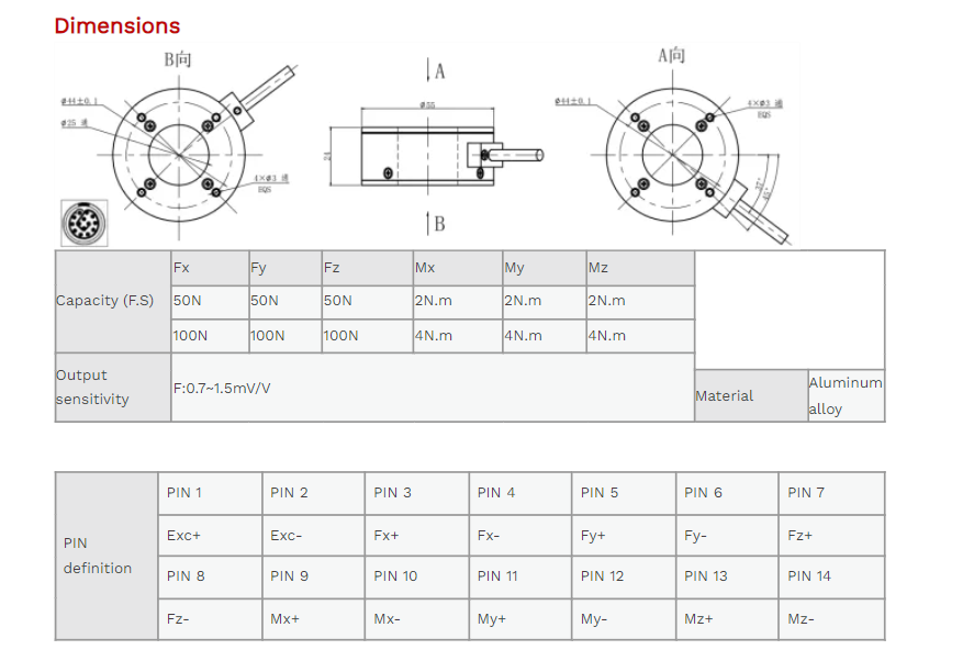 XJCSENSOR X-6A-D55-H24 6 Axis Force/Torque Sensor (50N~100N) | EMIN.ASIA