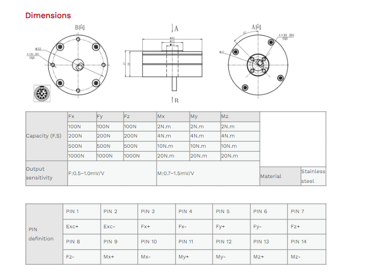 XJCSENSOR X-6A-D62-H27-A 6 Axis Force/Torque Sensor (100N~1000N) | EMIN.ASIA