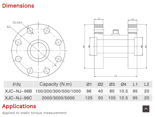 XJCSENSOR X-ST-98B Torque Load Cell (0-500N.m) | EMIN.ASIA