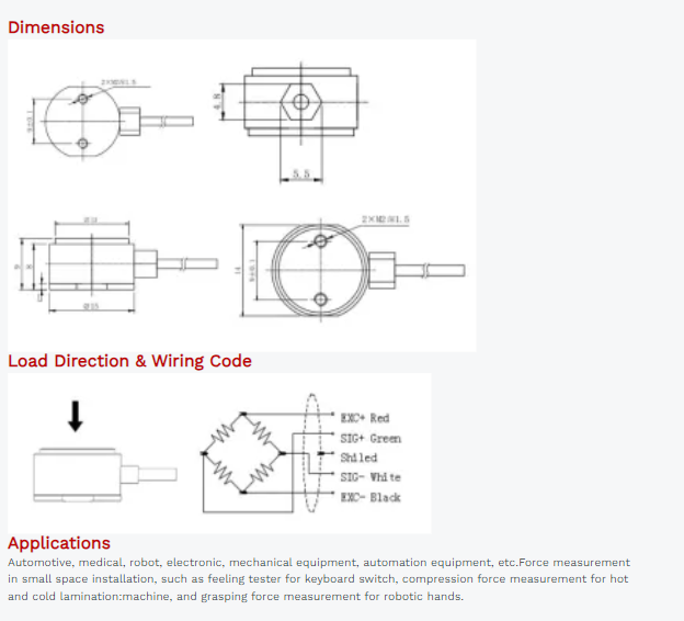 Cable Connection: Ex+: Red; Ex-: Black; Sig+: Green; Sig-: White