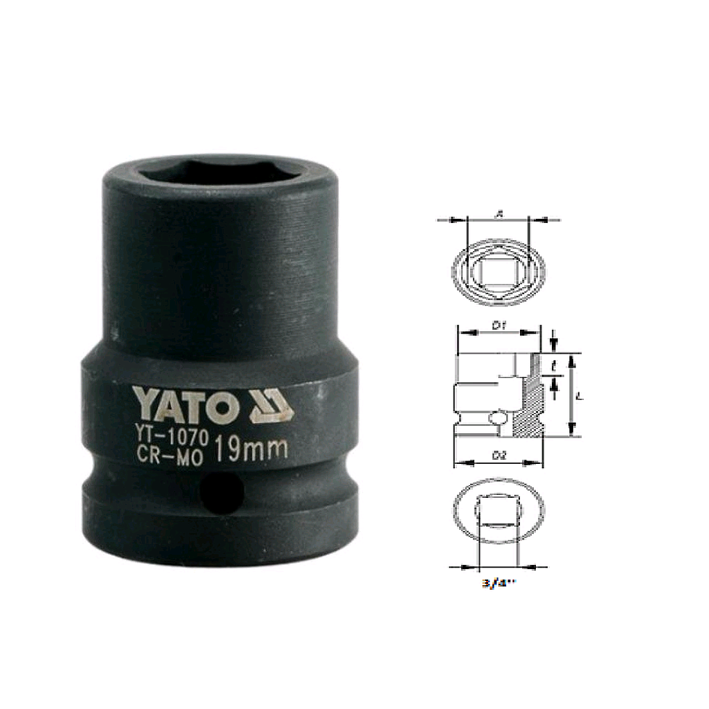 Yato YT-1070 Hexagonal impact socket 3/4" (19mm) | EMIN.ASIA