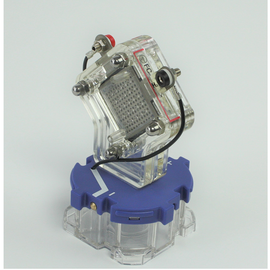 Students Electronic Building Block with PEM fuel cell for H2/O2 operation and H2/air operation. To perform student experiments in the field of hydrogen technology, for example conversion of hydrogen to electrical energy and its use.