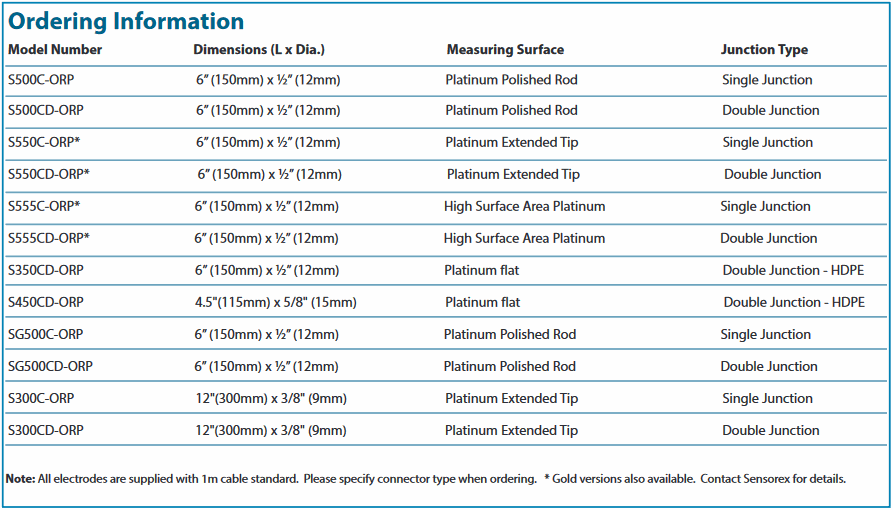 SENSOREX S500C-ORP/TL ORP传感器 (Platinum, +/- 2000mV)