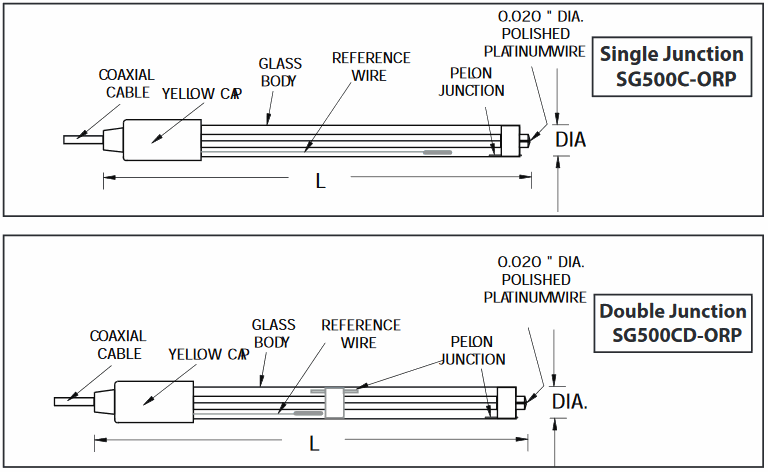 Characteristics: ORP Sensor, Platinum, 12mm, Polymer Body